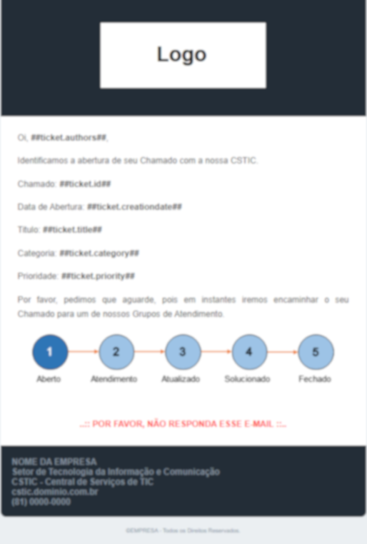 Com alegria e um pouco de receio, foi dessa forma que recebemos o desafio de implantar o GLPI 10 aqui na empresa, e achamos que essa seria mais uma oportunidade de aprendizado. Mas, confesso que não queria partir do zero em relação aos parâmetros de configuração. Por isso, optamos por usar os Arquivos Modelo (Adaptados), o que nos fez economizar um tempo precioso, sem termos que reinventar a roda.
